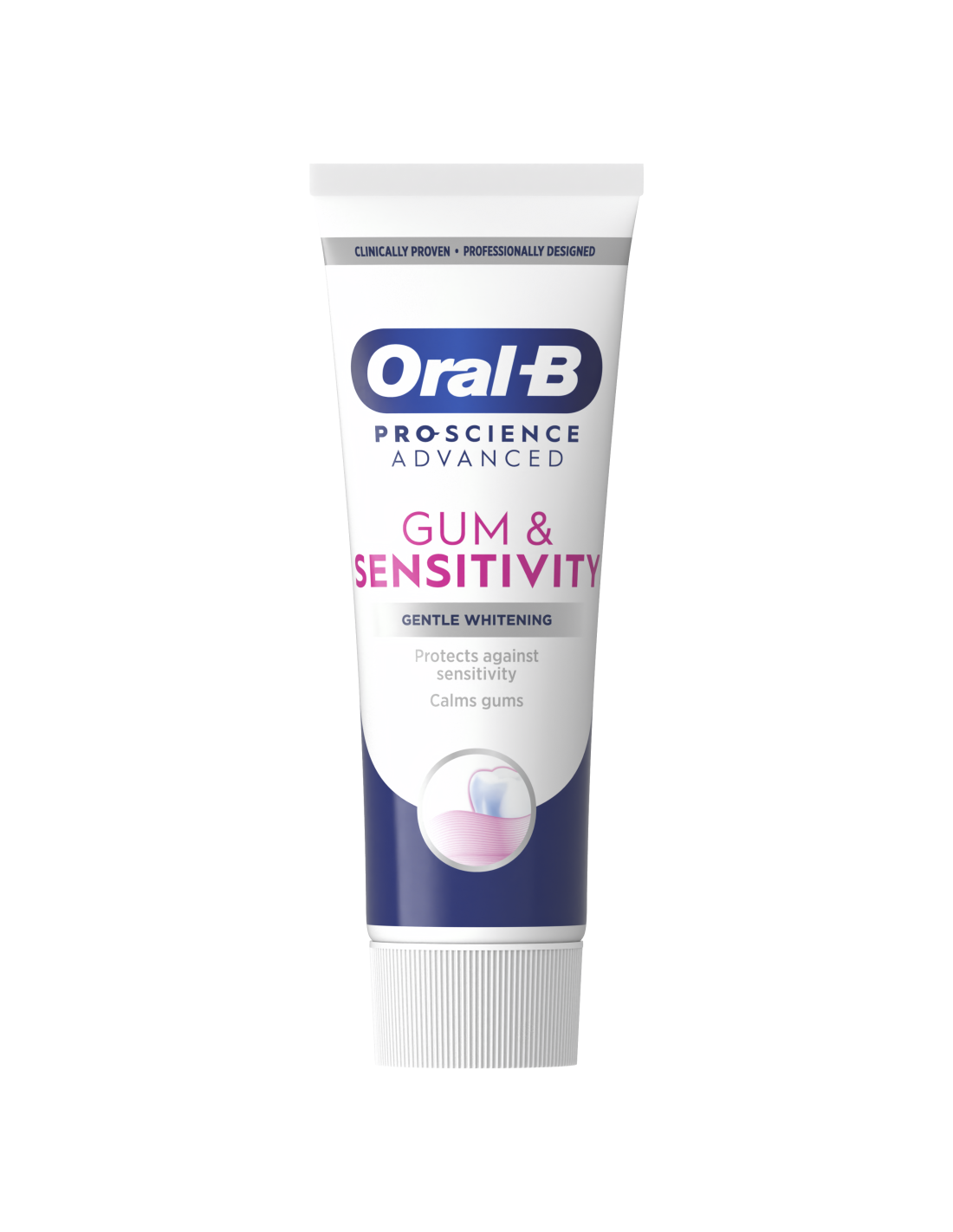 Oral-B Pro-Science Advanced Gum & Sensitivity Gentle Whitening hambapastal on kliiniliselt tõestatud kaitse tundlikkuse vastu ning see rahustab igemeid, et tekitada suus mugav tunne. Selle ainulaadne Activcalmi tehnoloogia loob kaitsekihi tundlike hammaste kaitseks, jahutab igemeid harjamise ajal ja järel ning pakub tänu õrnale vahule tõhusat leevendust.