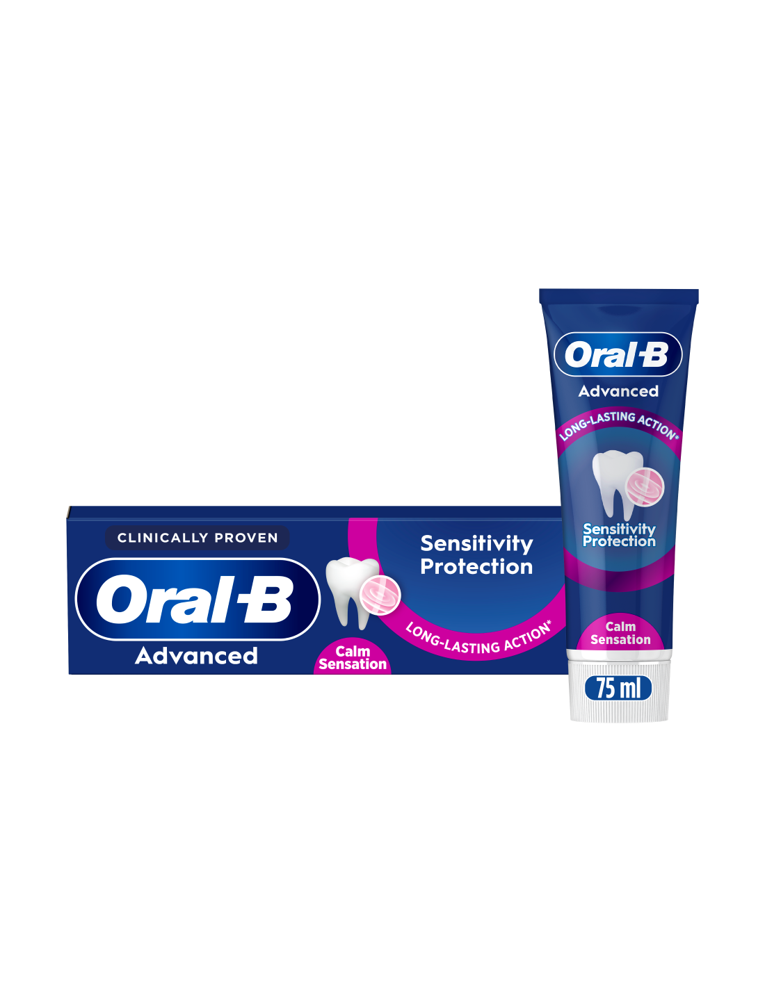 Hambapasta Oral-B Advanced Sensitivity Protection Calm Sensation on kliiniliselt tõestatud: see tagab pideval kasutamisel tundlikele hammastele kauakestva kaitse. Oral-B ainulaadne bakterivastane tehnoloogia tinafluoriidi kompleksi ja aktiivsete rahustavate ainetega loob kaitsekilbi, mis kaitseb tundlikke hambaid tõhusalt ka harjamiste vahel, pakkudes jahutavat tunnet harjamise ajal ja järel. Sobib tundlikele hammastele. Igapäevane hambapasta.