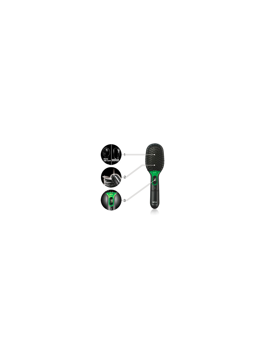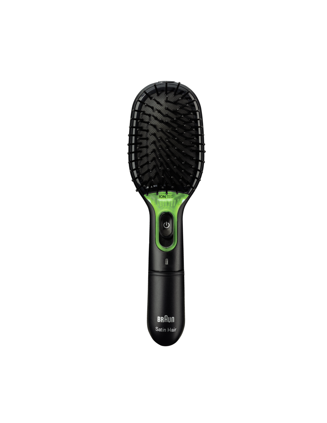 Brauni IONTEC-tehnoloogiaga hari külvab nupule vajutades juuksed ioonidega üle.