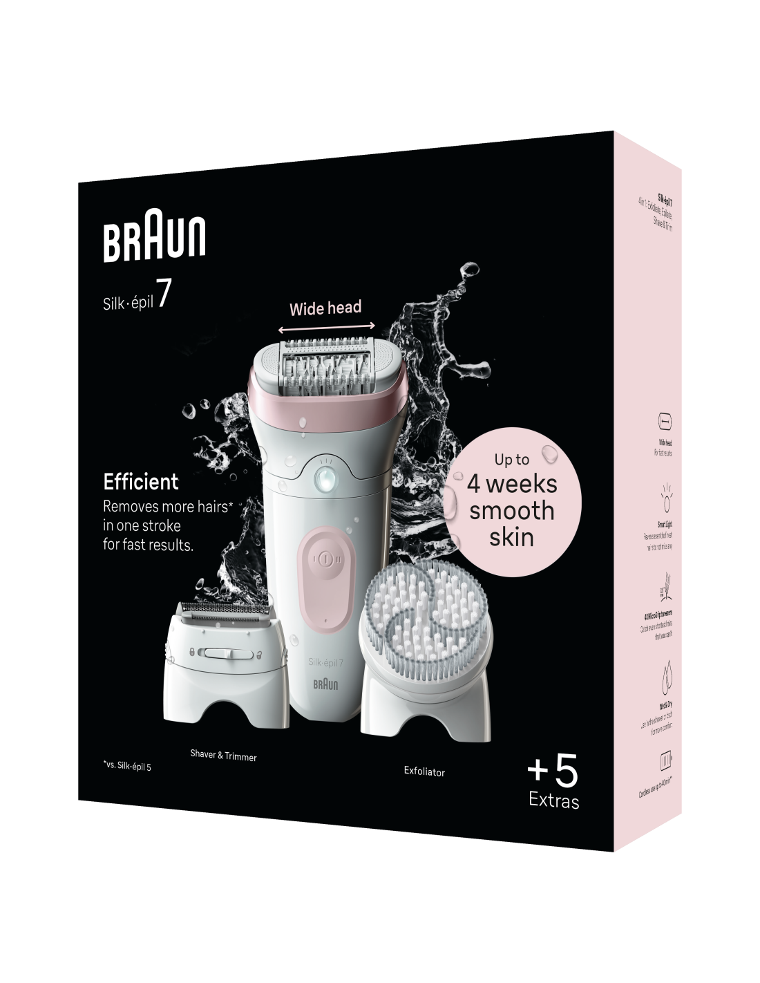 - Lai lõikepea. Eemaldab ühe tõmbega rohkem karvu, võrreldes seadmega Braun Silk-épil 5.