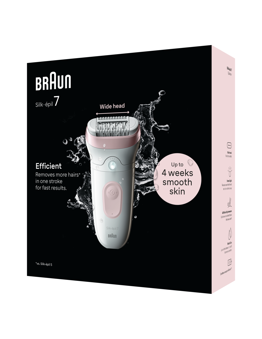 - Lai lõikepea. Eemaldab ühe tõmbega rohkem karvu, võrreldes seadmega Braun Silk•épil 5.