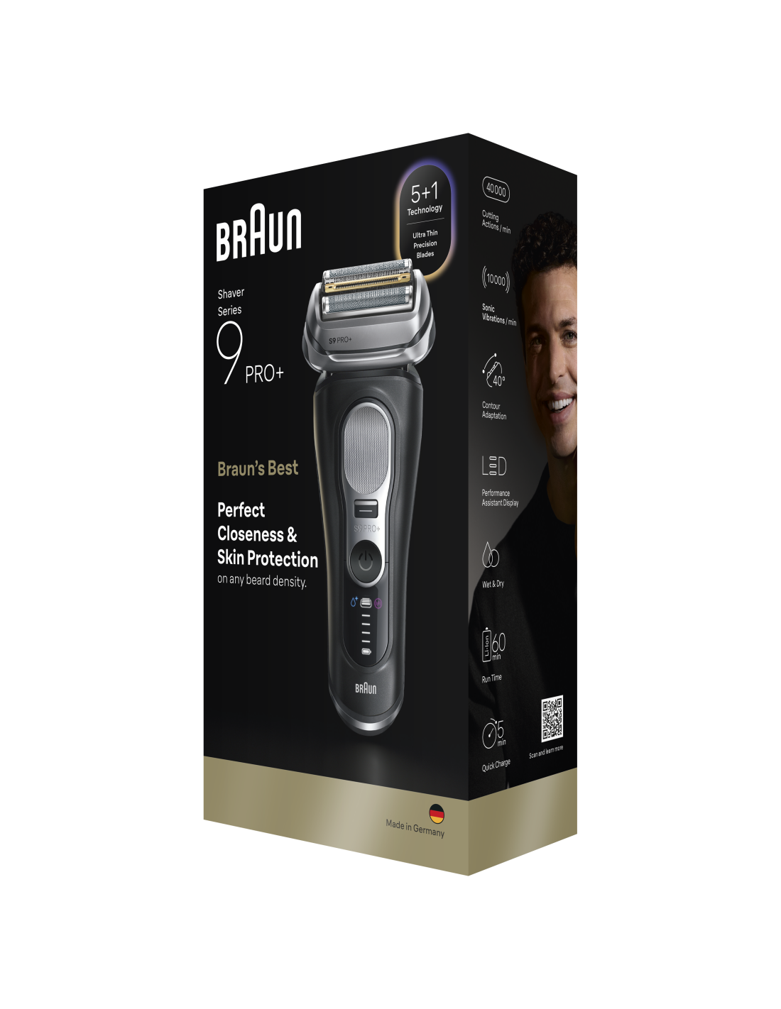 Valmistatud Saksamaal – eriti vastupidav aastateks: Series 9 Pro+ elektripardel meestele on valmistatud kvaliteetsetest materjalidest suure tähelepanuga detailidele ning testitud pikaajaliseks kasutamiseks. 100% veekindel märjaks ja kuivaks raseerimiseks. Integreeritud ProTrimmer tagab täpsuse ka pikemate karvade puhul. Kuni 60 minutit tööaega liitiumioonakuga.