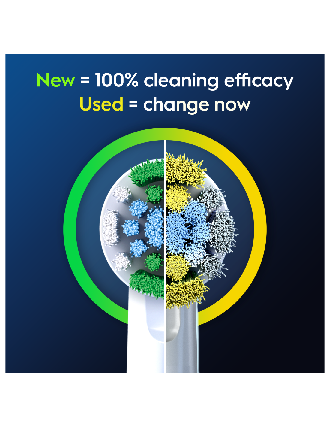 - Harjapea kasutusindikaator: harjased muutuvad olenevalt individuaalsest kasutusest rohelisest kollaseks, tuletades meelde, millal hambaharjapead vahetada, et säilitada 100% puhastustõhusus.