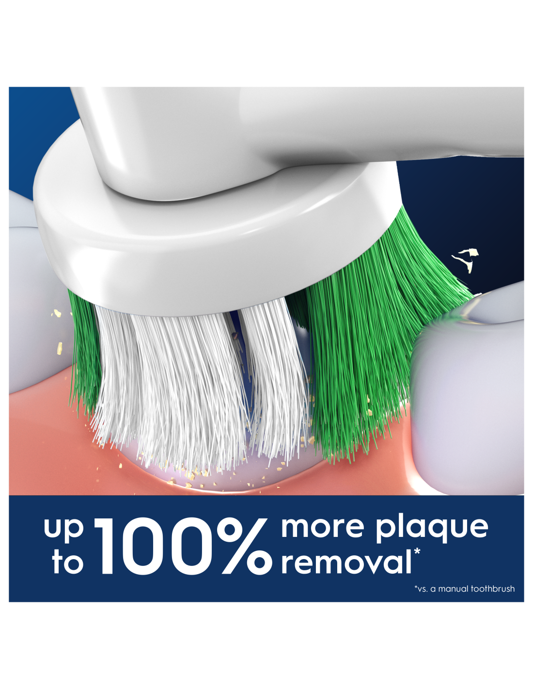 - Eemaldab võrreldes tavalise hambaharjaga raskesti ligipääsetavates kohtades 100% rohkem bakteriaalset kattu ning tagab puhtamad hambad ja tervemad igemed.