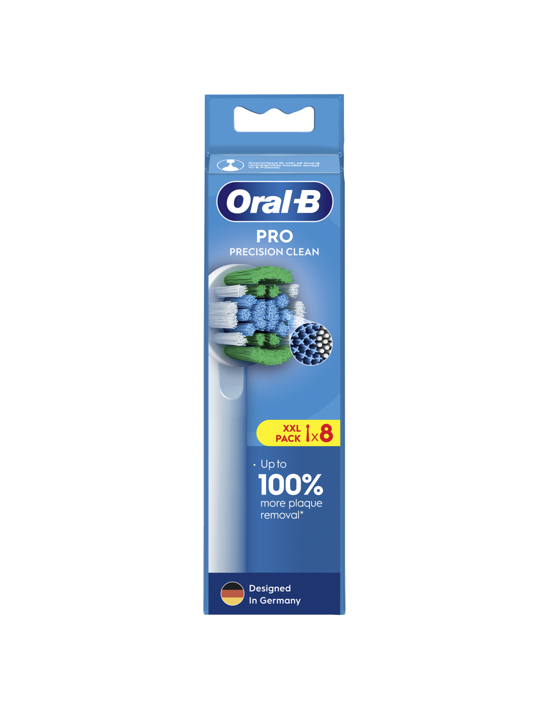 Ainulaadsed Precision Clean hambaharja harjased tagavad võrreldes tavalise käsihambaharjaga suurepärase hambapesu ja kõrvaldavad hambakatu igalt hambalt. Oral-B originaalsed harjapead on disainitud uute X-kujuliste harjastega, mis puhastavad kohti, kuhu ümarad harjased ei ulatu. Selle harjapea kasutusindikaator muudab harjased rohelisest kollaseks, näidates, millal vahetada hambaharjapea 100% puhastustõhususe saavutamiseks. Garanteeritud ühilduvus kõigi Oral-B laetavate elektrihambaharjadega, välja arvatud Pulsonic & iO hambaharjad.