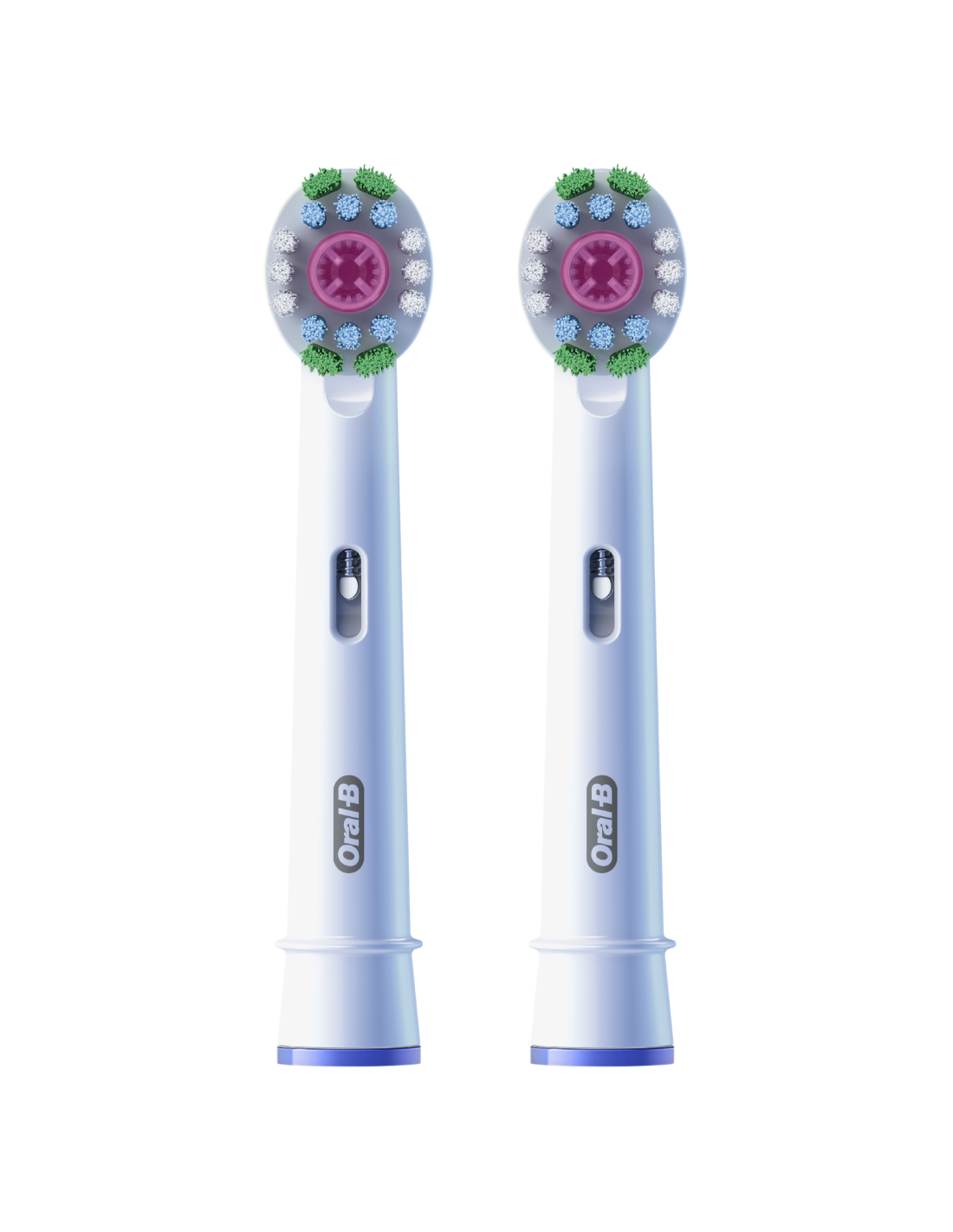 Oral-B 3D White hambaharjal on ainulaadne poleerimisotsik, mis valgendab hambaid juba esimesest päevast peale, eemaldades pindmised plekid. Oral-B originaalsed harjapead on disainitud uute X-kujuliste harjastega, mis puhastavad kohti, kuhu ümarad harjased ei ulatu. Selle harjapea kasutusindikaator muudab harjased rohelisest kollaseks, näidates, millal vahetada hambaharjapea 100% puhastustõhususe saavutamiseks. Garanteeritud ühilduvus kõigi Oral-B laetavate elektrihambaharjadega, välja arvatud Pulsonic & iO hambaharjad.