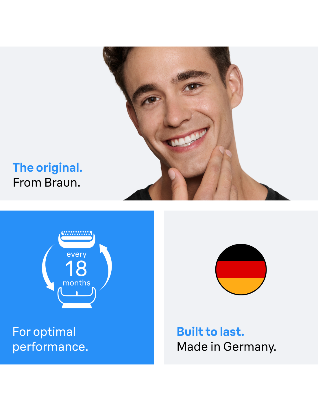 Brauni ORIGINAAL: valmistatud Saksamaal. Kasuta ainult Brauni originaalseid asendusraseerimispeasid, et vältida raseerija kahjustamist.