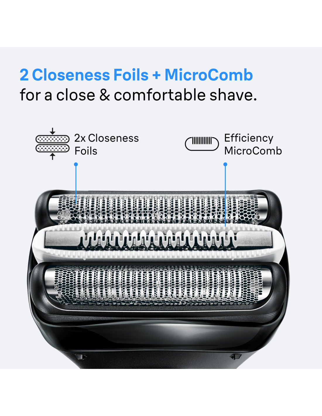 Põhjalik ja meeldiv raseerimine: 2 raseerimisvõrku põhjalikuks raseerimiseks ning tõhus MicroComb aitavad tagada sileda ja mugava raseerimise.