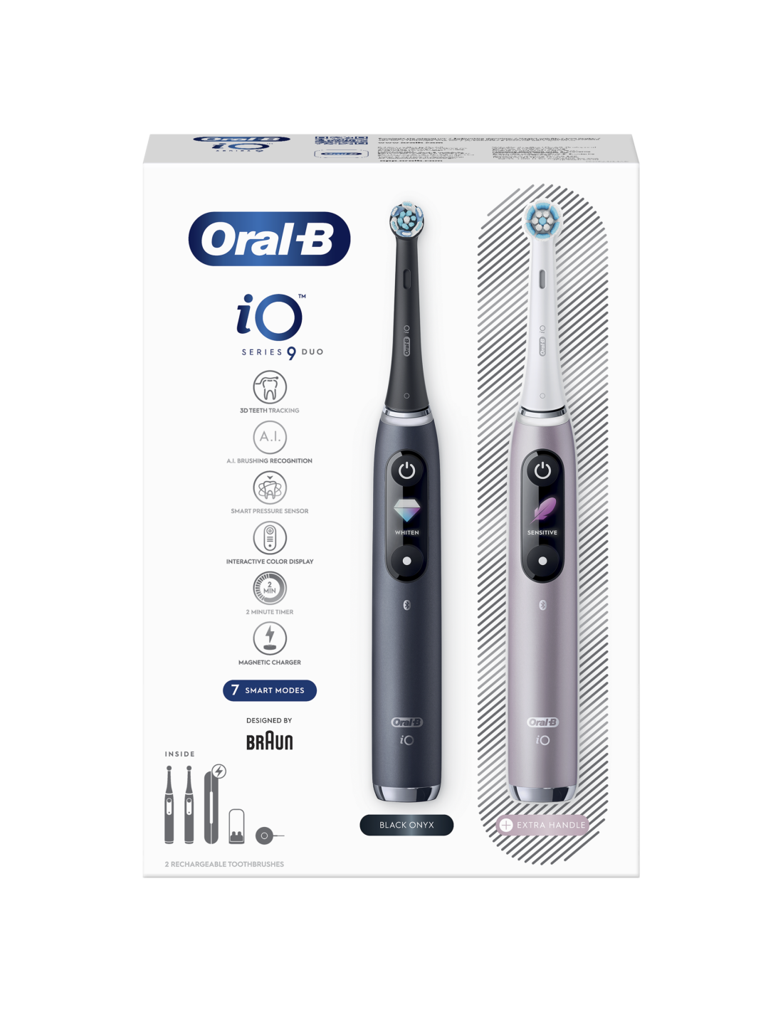 - „iO™“ – tai geriausia „Oral-B“ valymo technologija, kuri sujungia unikalią apvalią šepetėlio galvutę su švelniomis mikrovibracijomis, o naujoviška tiesinė magnetinė pavara sutelkia energiją būtent ten, kur jos labiausiai reikia – ties šerelių galiukais. Gaivus švaros pojūtis ir 100% sveikesnės dantenos vos per vieną savaitę.