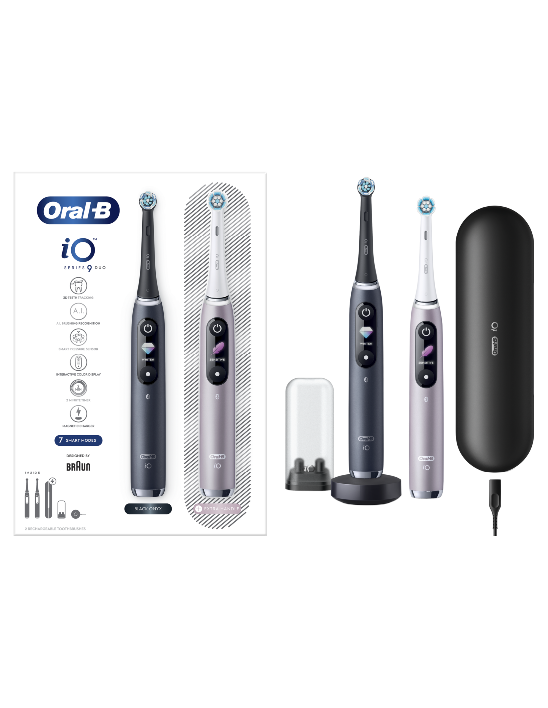 iOM9D.2J2.2AD Oral-B iO9 Duo Elektrinis Dantų Šepetėlis Black Onyx/ Rose