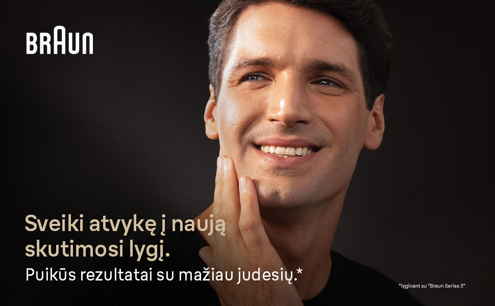 Braun ORIGINALAS: pagaminta Vokietijoje. Naudok tik originalias Braun keičiamas skutimosi galvutes, kad išvengtum skustuvo pažeidimų.