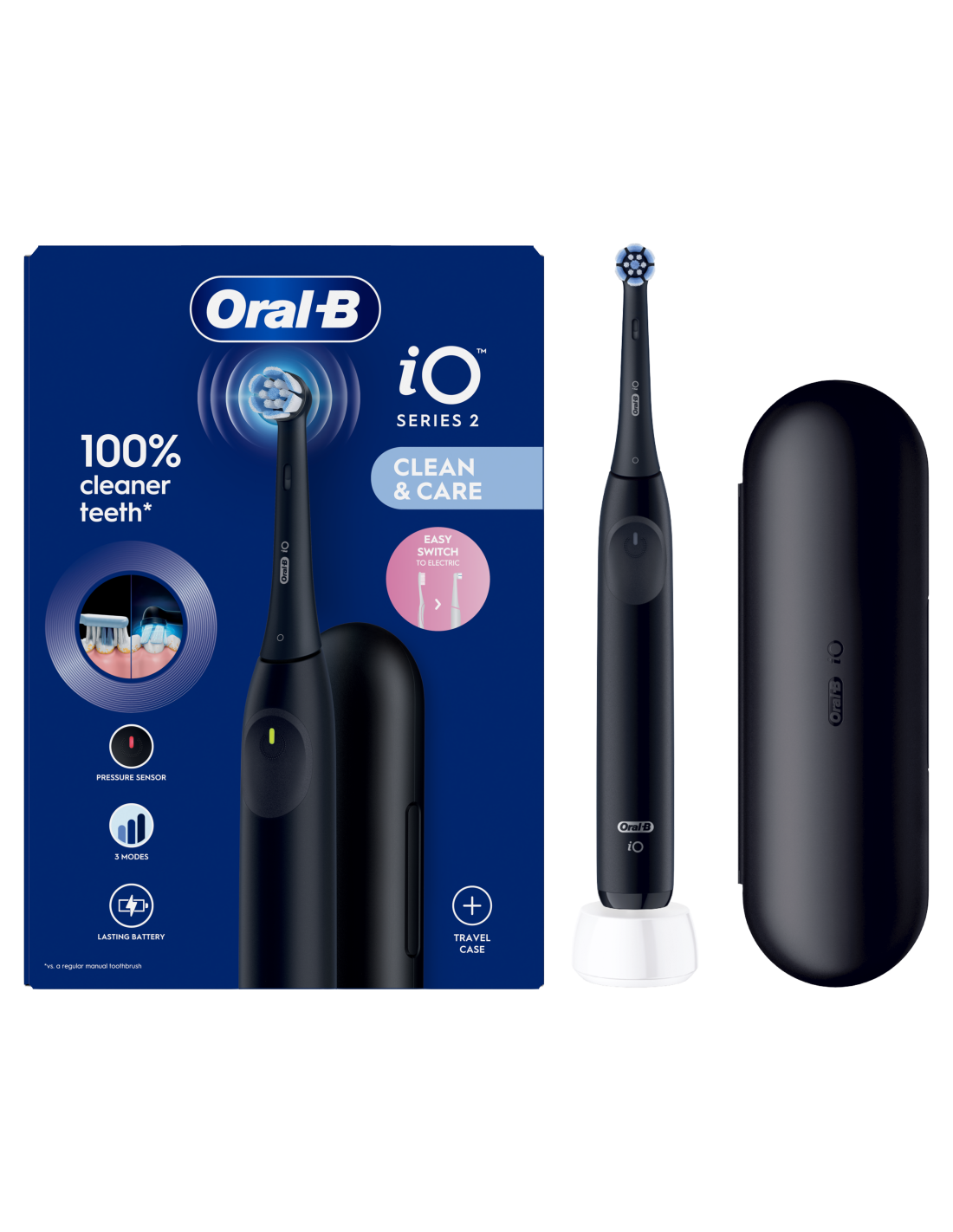 iOS2.1D9.2K Oral-B iO2 Elektriskā Zobu Birste Night Black + Ceļojuma Futrālis