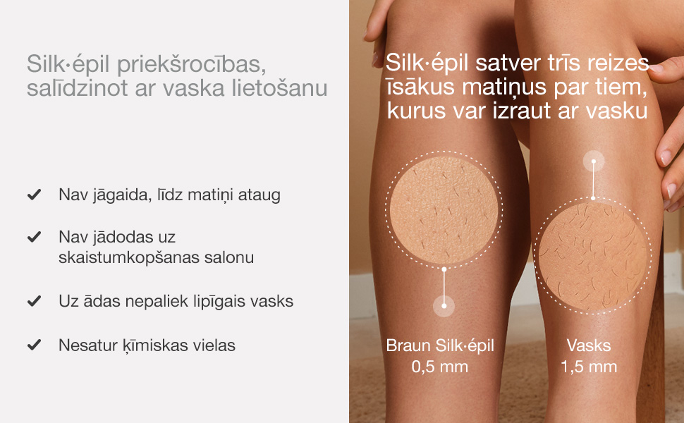 - Satver īsākos matiņus (0.5mm), ko vasks nespēj.