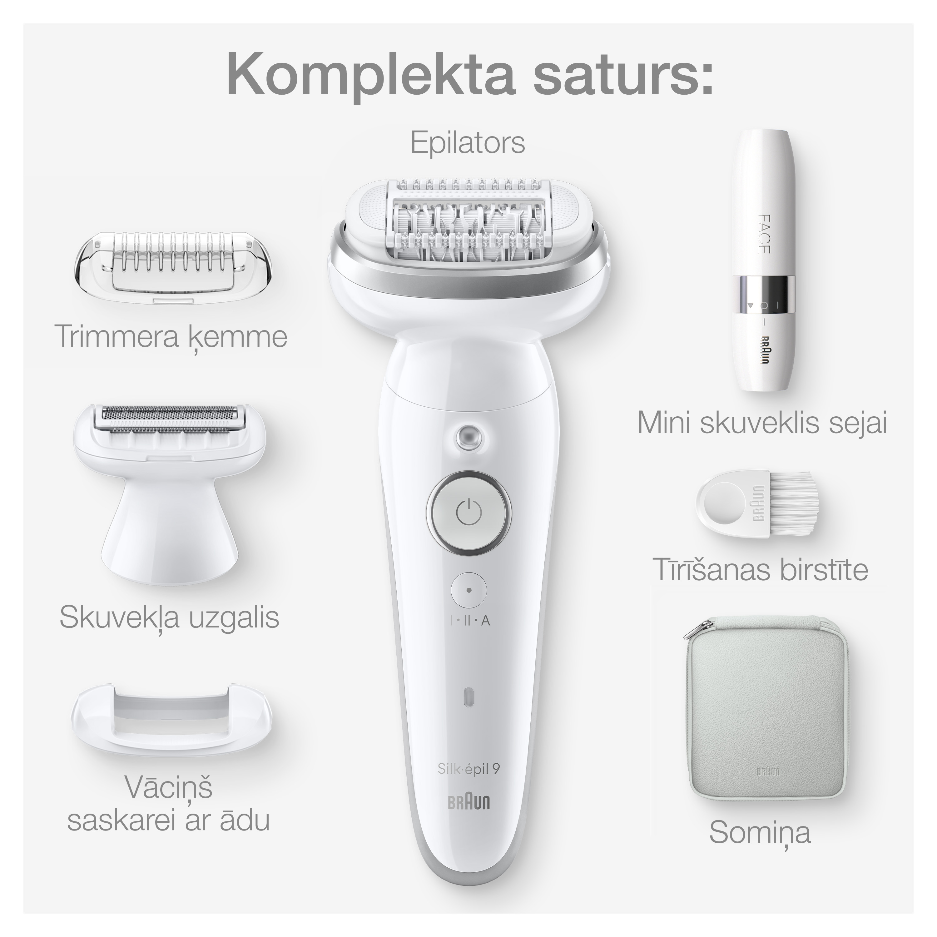 SES9-341 Braun Silk•épil 9 Epilators + FS1000 Miniskuveklis FACE