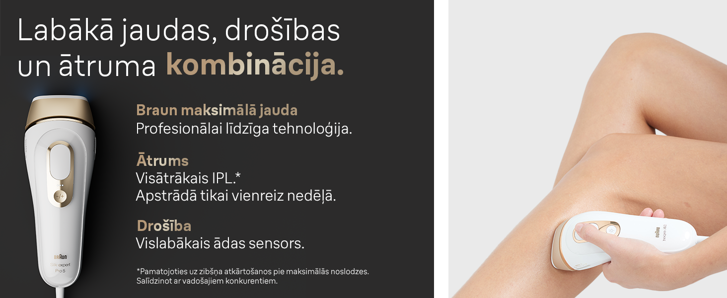 ● Braun ātrākais fotoepilators mazāk neapstrādātām vietām. Zibšņi līdz 125 reizēm minūtē, nodrošinot apstrādi bez piepūles un labāku ādas pārklājumu.