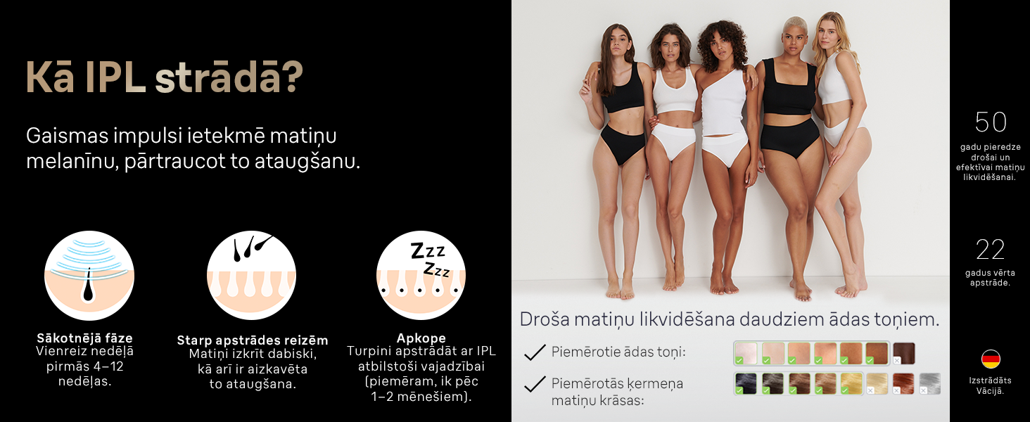 ● Optimāla jauda katrai ķermeņa daļai ar Skin Pro 2.0 — salonam līdzīga tehnoloģija, kas automātiski un nepārtraukti pielāgojas jūsu ādas tonim.