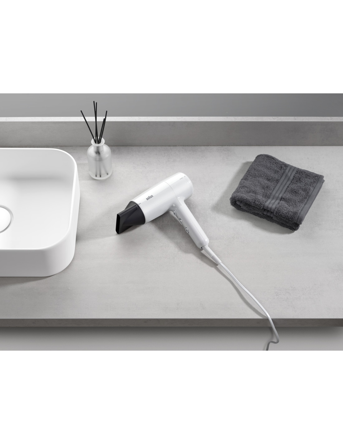 - 2 ātruma / 3 karstuma iestatījumi + vēsā gaisa plūsma,