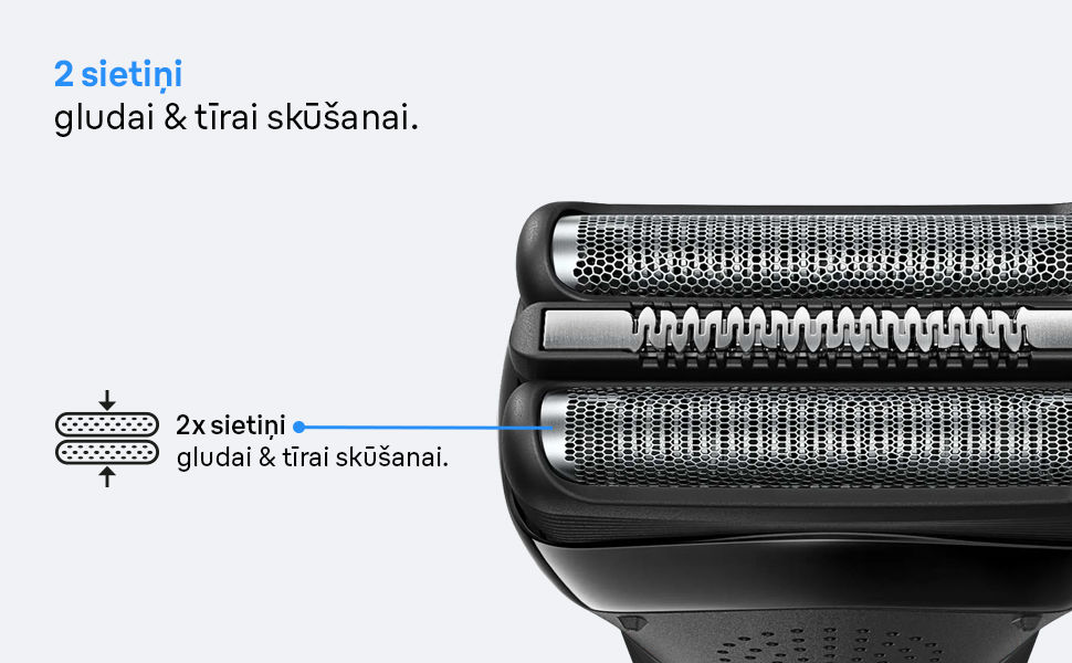 Trīs specializētie skūšanās elementi, kopīgi darbojoties, nodrošina gludu un saudzīgu skūšanos. „Braun” patentētais „SensoFoil”™ pasargā ādu no izcili asajiem asmeņiem.