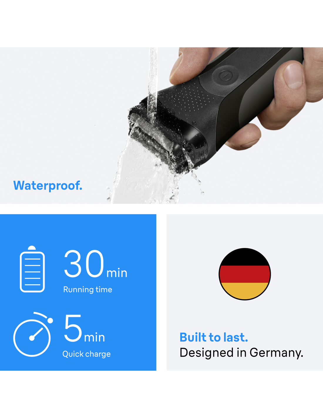 Visi 3. sērijas skuvekļi ir izstrādāti un konstruēti Vācijā, tāpēc ir padomāts par ikvienu sīkumu, kas nodrošina izcilu precizitāti. Tā ir kvalitāte, ko varat novērtēt katru dienu.