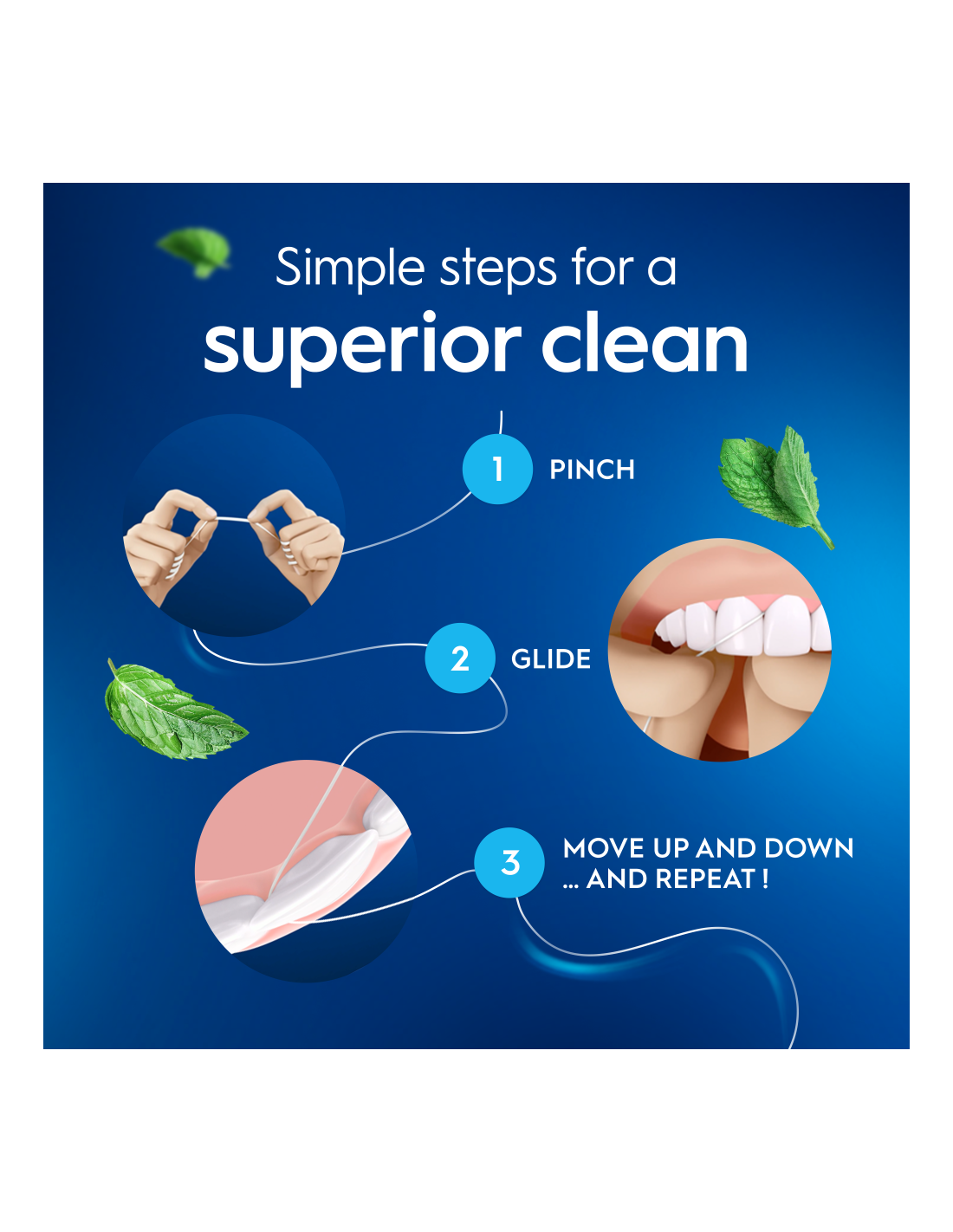 Oral-B Essential Zobu Diegs palīdz uzturēt zobu higiēnu un tīra starp zobiem.