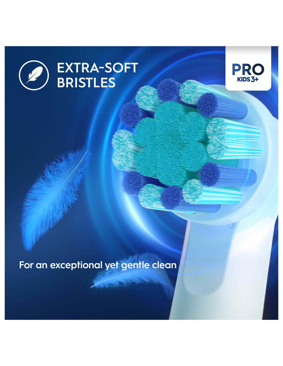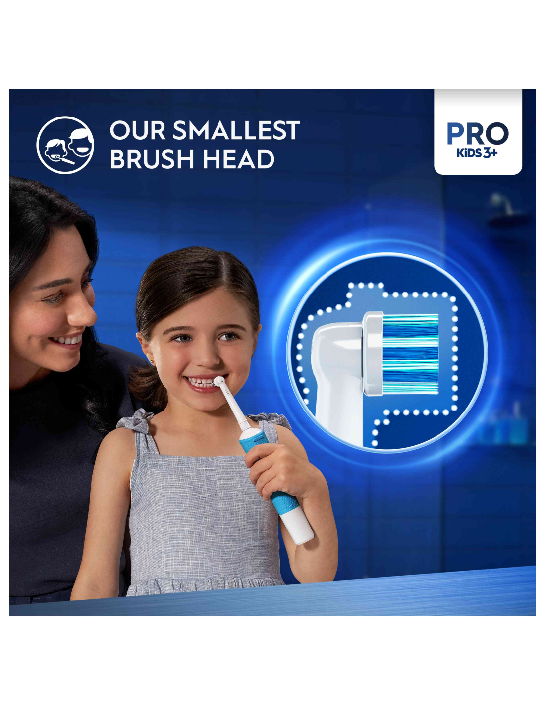 Mazāka, speciāli izstrādāta bērna mazajiem zobiem un mutei, birstes galviņa ar īpašiem sariem nodrošina ļoti saudzīgu tīrīšanu. Speciāli bērniem izstrādātie tīrīšanas sari ar garākiem sariem birstes vidū zobu košanas virsmu tīrīšanai. Piemēroti Oral-B Vitality, PRO, Smart un Genius zobu birstēm. NAV piemēroti Oral-B iO un Pulsonic.